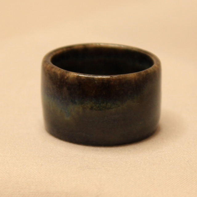 Teeny wheel-thrown pot with aurora glaze combo inside and out.